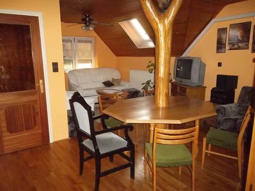 Pánovics nyaraló is a detached holiday home with a barbecue, set in Balatonszentgyörgy. The unit is 15 km from Hévíz. Free private parking is available on site. The unit is equipped with a kitchen. A TV with satellite channels is featured. Other facilities at Pánovics nyaraló include a...